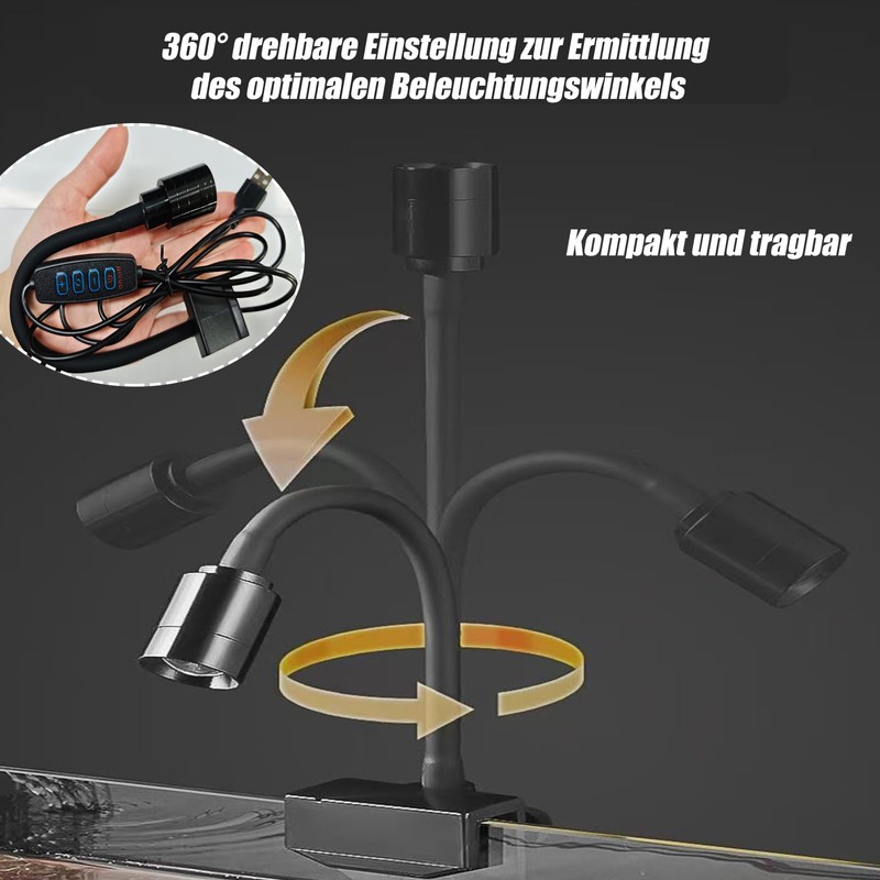 • EASY STORAGE Save valuable space with this clip-on aquarium light. With adjustable light and dark settings and a compact size, it is suitable for any aquarium. In addition, it runs via USB and is therefore easily accessible.