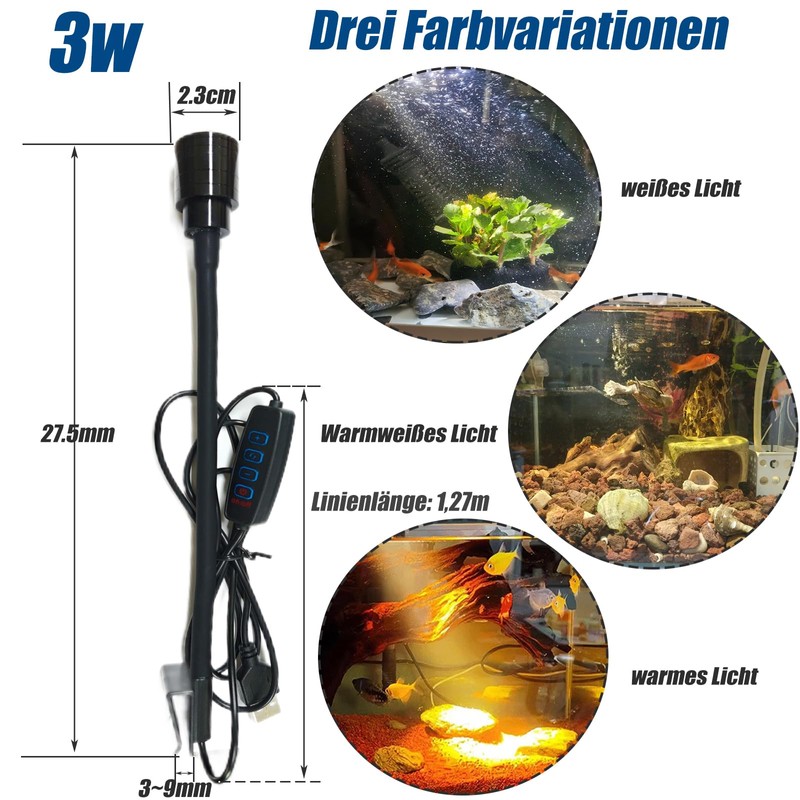 GERUI 3 W clip-on aquarium light, adjustable aquarium USB light for attaching - improve the viewing experience. 3 colours adjustable focal length with soft light for living room, hotel, resta