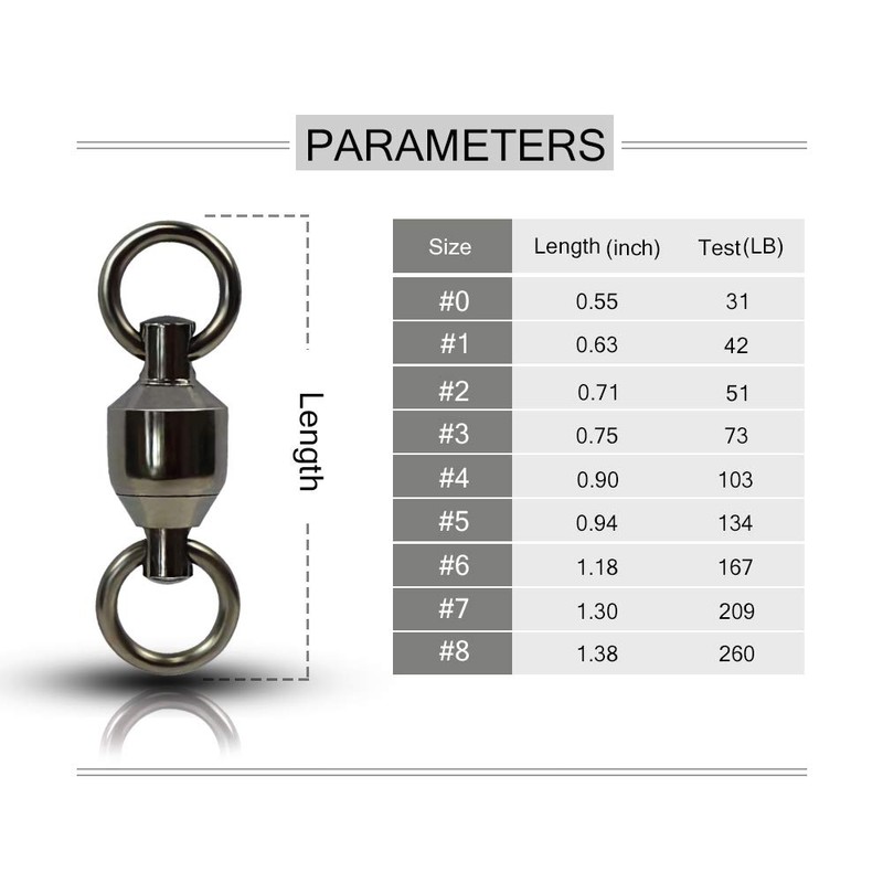 - Durable: This fishing swivels ball bearing are made to be corrosion resistance, abrasion resistance and shock resistance. The barrel swivels spins fast when hang out your fishing lures, the fishing lures will be more reality and attract more fishes.
