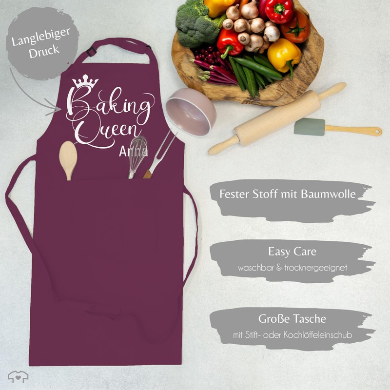 Geschenk mit Namen personalisiert by Shirtracer - Apron - Baking Apron Women - Baking Queen with Name - Gift Mum Grandma Birthday Christmas Mother's Day Baking, 2 aubergine