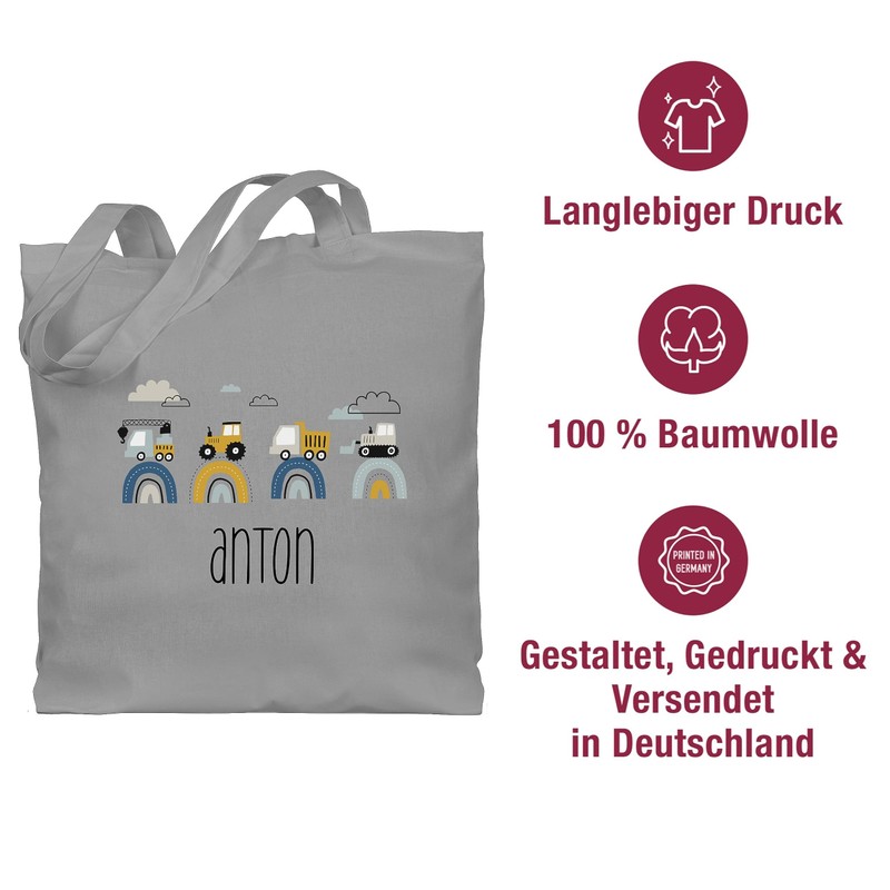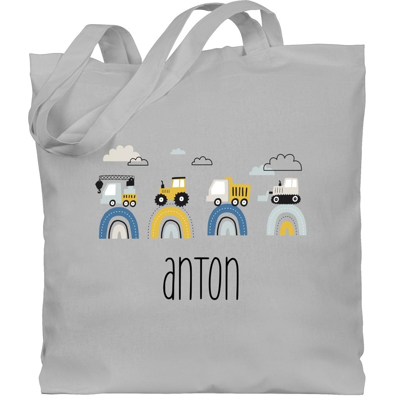 Geschenk mit Namen personalisiert by Shirtracer - Cotton Bag - Construction Site I Tractor I Excavator I Crane I Dumper I Truck I Bulldozer, 1 Light Grey, Unit size
