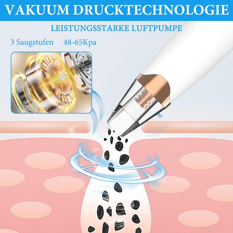 - Drei Modi: Wlectric blackhead remover verfügt über drei verschiedene saugmodi. Für erstanwender oder menschen mit trockener haut ist der erste gang von mittesserentfernergerät die bevorzugte option, da er hautreizungen reduziert. Der zweite gang ist für neutrale haut geeignet, und der dritte gang ist für fettige haut geeignet. Er kann hartnäckige verunreinigungen tief in die poren entfernen.