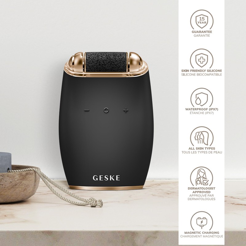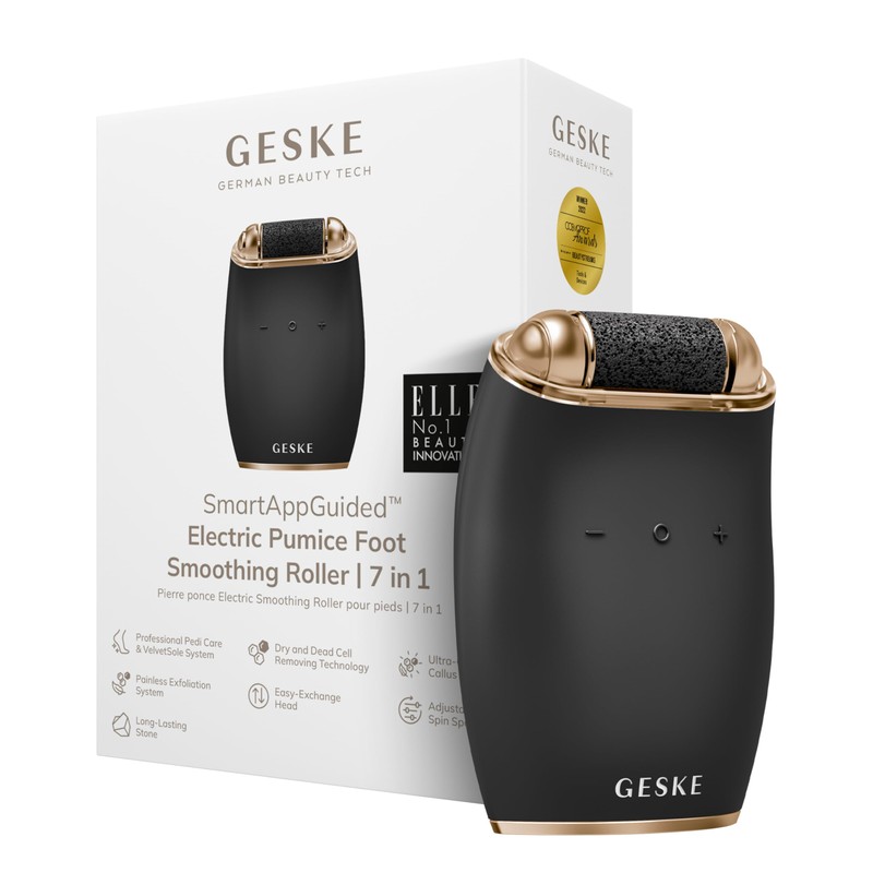 GESKE Electric Pumice Foot Smoothing Roller | 7 in 1 | Elektrische Fußfeile | Bimsstein | Weiche Füße | Effektive Hornhautentfernung | Handliches Design |Für Dein Pediküre-Set