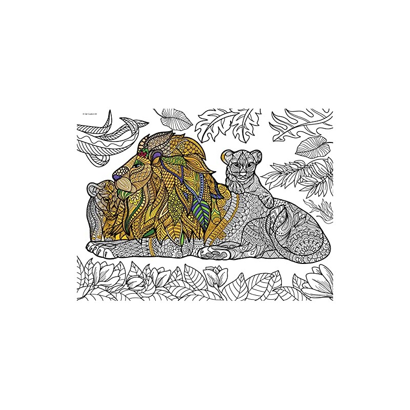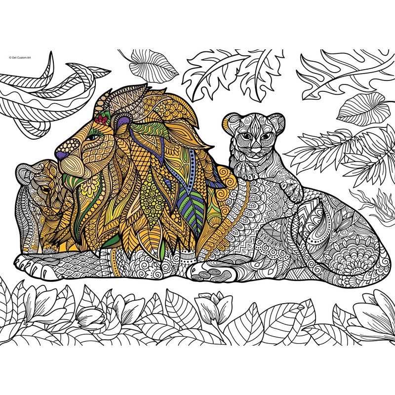 Get Custom Art Giant coloring Poster for Kids, Teens, and Adults Mandala Style (Lion & Cubs, 36x48)