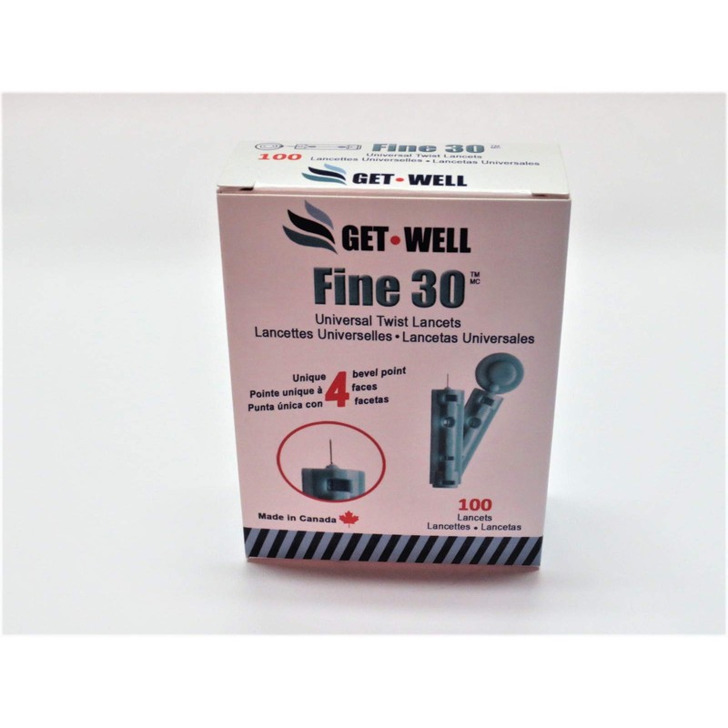 GET•Well Fine 30g Universal Twist Lancets - Made in Canada ! 100 ET Prep Pads...