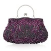 Gets Evening Party Clutch Bag, Beaded Sequin Design, with Tiny glass, Attached with Hanging Strap. (Purple)