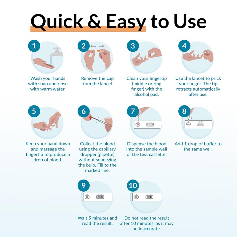 Discover if you suffer from an underactive thyroid (hypothyroidism) with our Thyroid TSH Test. The test measures the level of TSH (Thyroid Stimulating Hormone) in the blood and yields a positive result when TSH levels exceed 5 IU/ml. If you wish to conduct a more comprehensive thyroid assessment and also measure the levels of free T3 and T4,