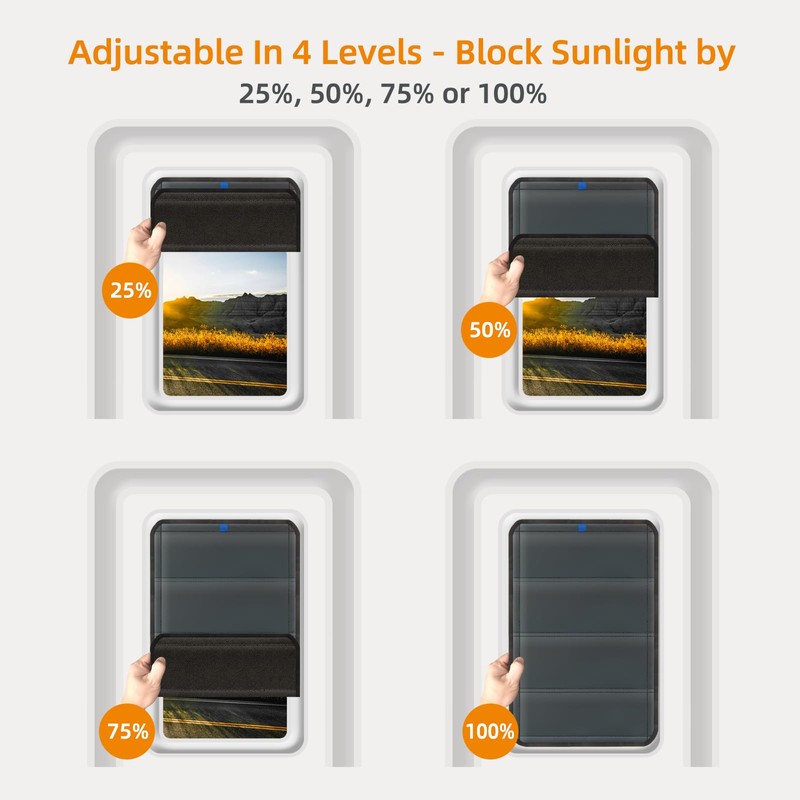 - 【Universal Fit & Quick Install】Designed for most RV door window shade openings (25"x16"). Magnetic edges snap securely to metal frames, while the top hook strip accommodates non-metal surfaces—no tools required.