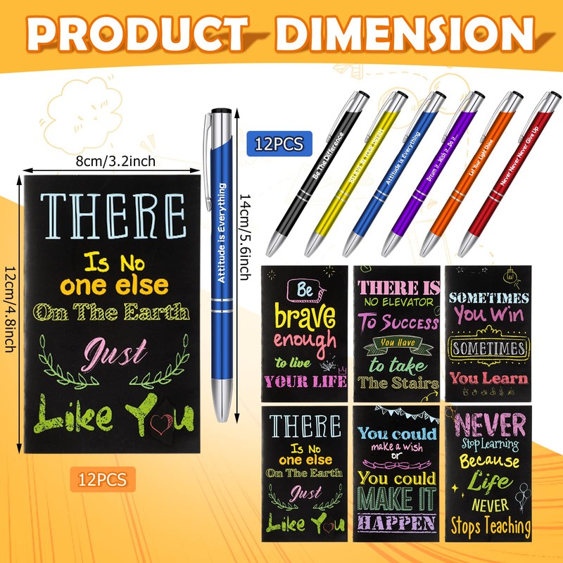- Practical Combination in 1 Kit: you will receive 24 pieces of inspirational gifts for women at one time, including 12 pieces of notepads, and 12 pieces of ballpoint pens in 6 different styles, meeting your daily using and sharing needs