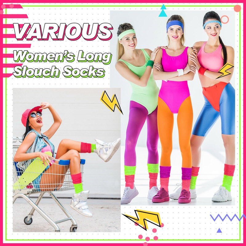 - Vintage and Stylish Aesthetics: these neon slouch socks boast an attractive and retro style reminiscent of the 1980s that effortlessly complements your fashion ensemble; They are ideal for pairing with your vintage clothing and jewelry accessories, offering classic colors, adorable designs, and exceptional craftsmanship