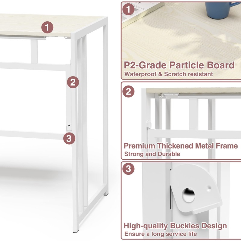 - Sturdy and Durable - The folding computer desk is composed of MDF board and thickened metal frame, which can support 110 lbs. Even after many repetitions of folding, it can still be folded smoothly without damage.