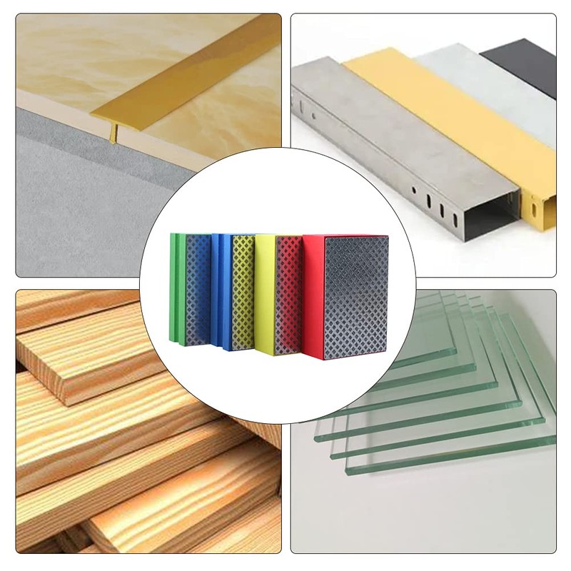 - APPLICATION: The flat hand sanding block widely used for glass granite concrete marble terrazzo engineered stone travertine polishing, and nearly any other kin d of materials surface and edges polishing.