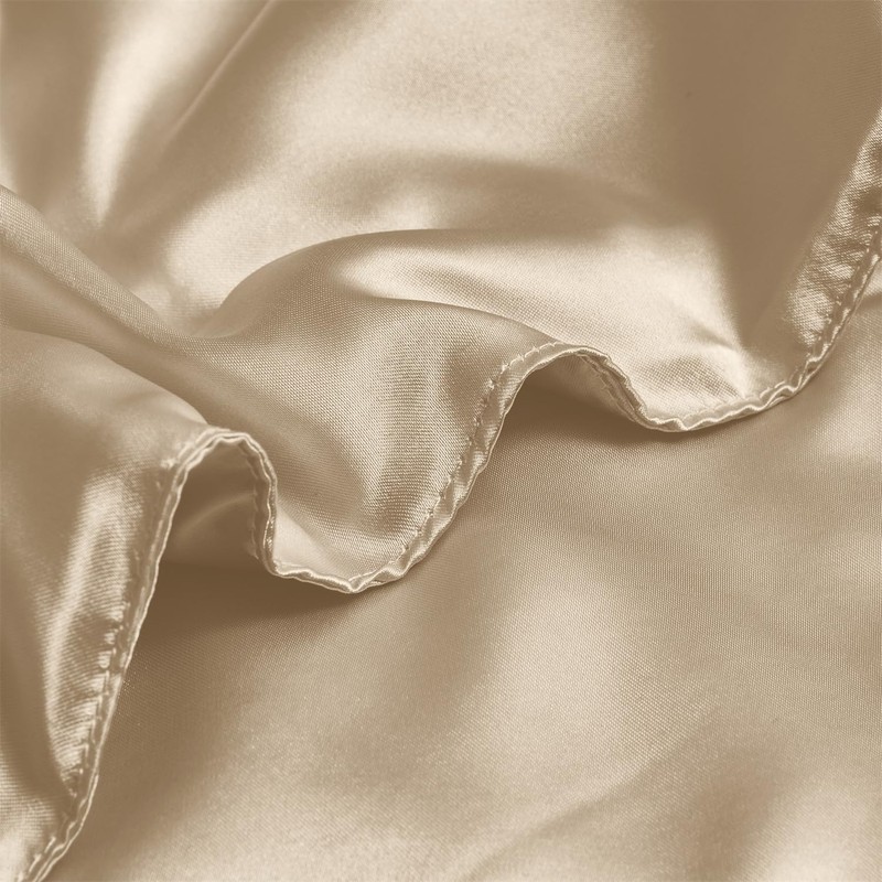 Gezu Cuddly Blanket Satin Blanket 220 x 240 cm Silk Blankets Beige Sofa Blanket Cooling Silky Silk Summer Blanket Lightweight Soft Luxury Smooth Shiny Satin Bedspread for Bed Sofa Couch Bedroom Office