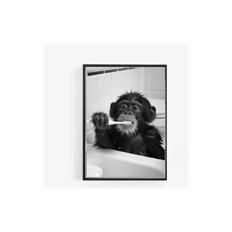 gfc FUNNY BATHROOM monkey BRUSHING TEETH A4 UNFRAMED PRINT PICTURE wall art Home decor Decorating