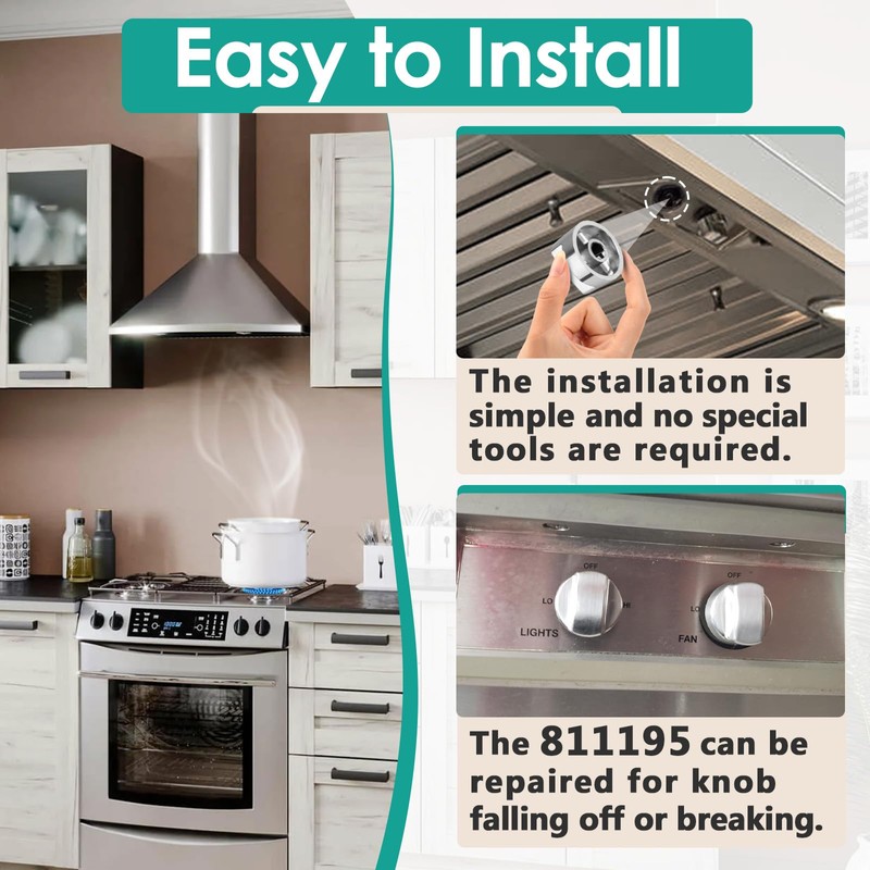 - Easy to Use: The 811195 ventilation hood knob provides a simple solution for homeowners needing to replace damaged or missing knobs on their range hoods. It securely locks into place in just minutes, restoring functionality to your ventilation hood instantly