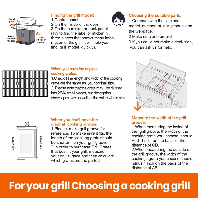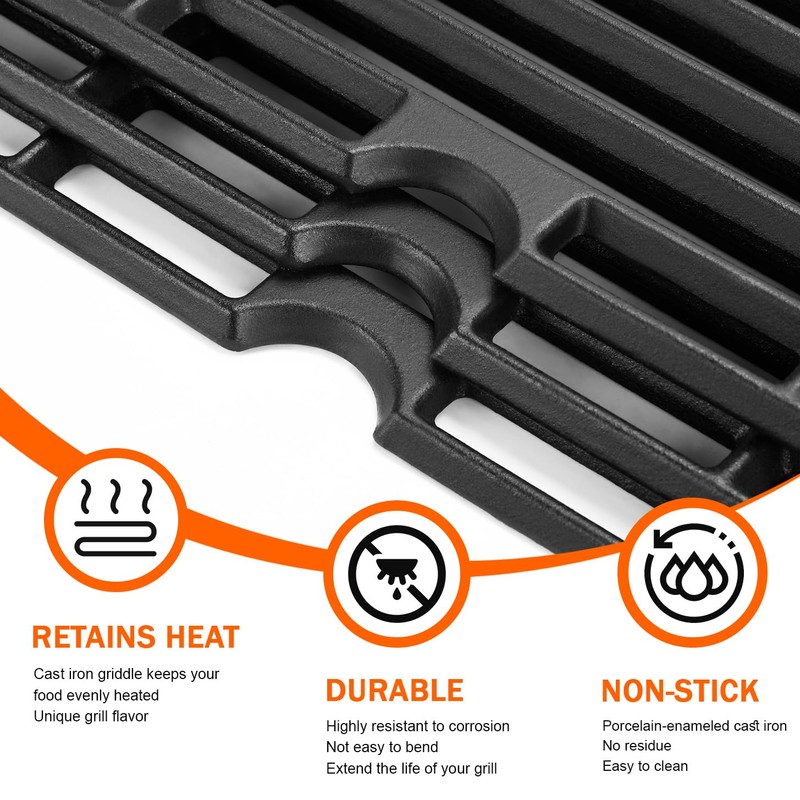 【Materials】: GGC grill grates made of porcelain-enameled cast iron, durable and sturdy, retains heat superbly, non-stick and easy to clean up. Fit BBQ grill, gas grills, electric burner, charcoal oven and others