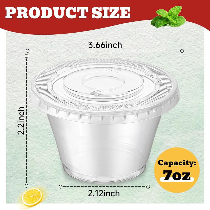 Versatile Usage: These 7oz plastic cups with lids are perfect for serving a variety of foods, such as ice cream, yogurt, pudding, and fruit. These disposable cups with lids are also suitable for snacks, salads, and small appetizers