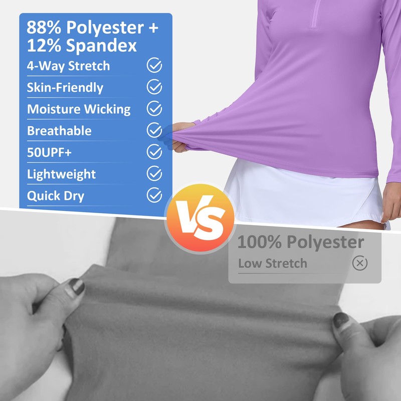 - Material: 88% Polyester & 12% Spandex, The GGOV golf shirt women are crafted with a lightweight, skin-friendly, and stretchy material, ensuring you maximum comfort throughout your dynamic activities.