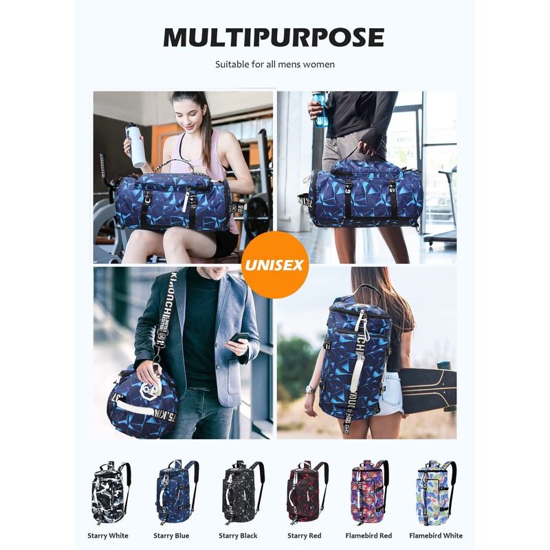 GGOV Gym Sport Bag Backpack Duffle Bag Weekender Bag Waterproof Travel Sling Bag Casual Daypack for Men and Women