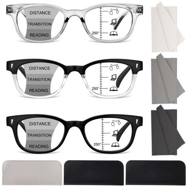 - 【3-Pack Reading Glasses Set】Includes 3 multifocal lenses + 3 glasses case + 3 cleaning cloth for home, office, or travel.Case protects glasses in bags or pockets