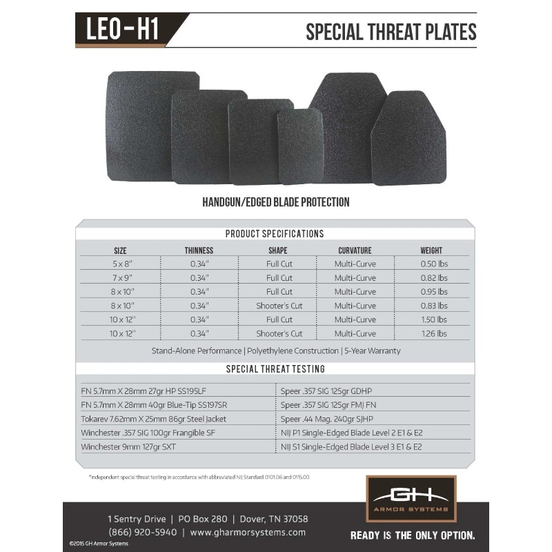 GH Armor Pistol/Spike Plate Special Threat 8x10" Full Cut Plate D1537
