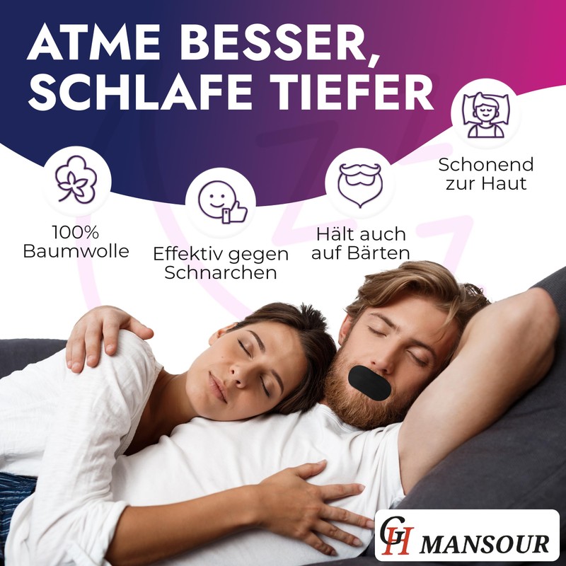 GH Mansour – 30 Mundpflaster aus Baumwolle gegen Schnarchen – Hypoallergen, Sicherer Halt, Atmungsaktiv – Unterstützung für Nasenatmung und besseren Schlaf