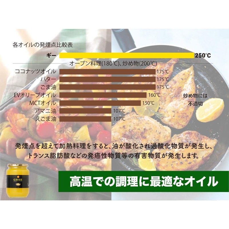 Ghee made from the highest quality grass fed butter from the Netherlands: This ghee is made from 100% grass-fed butter made from milk, eating natural grass while eating meadows in Europe. (Grasfed means "only grass eaten and grew up") The British TIME magazine has certified the Ghee "BEST50" the world's healthiest food. Much more fragrant and richer than butter, you can use it on sauté, soup, toast, steak, snacks, etc. to give you a new level of flavor than usual. It can be used to cook high temperatures and can be used as an alternative to butter. You can also enjoy "butter coffee" by dissolving it in your usual coffee. High smoke point of 252 degrees Celsius and liquidates at approximately 36 degrees Celsius.