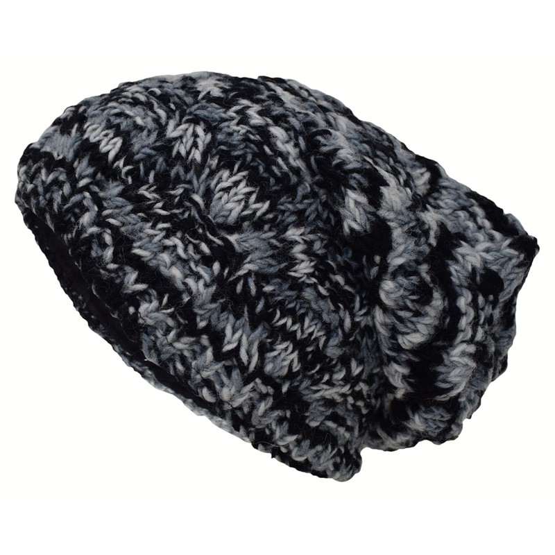 Gheri Cable Knit Winter Fleece Lined Floppy Hat Wool Rasta Hat, Black tie colour, Einheitsgröße