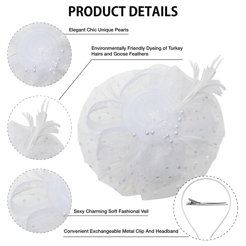 - Versatile Wearing Options: This stylish tea party accessories for women offers multiple wearing options, including a removable clip and headband. Wear the women's fascinators as a headband or hair clip for a glamorous look, or attach it to the decorative section for a vintage-inspired headpiece. Perfect for tea parties, weddings, or any special occasion, the white fascinator hats for women adapts effortlessly to your style.