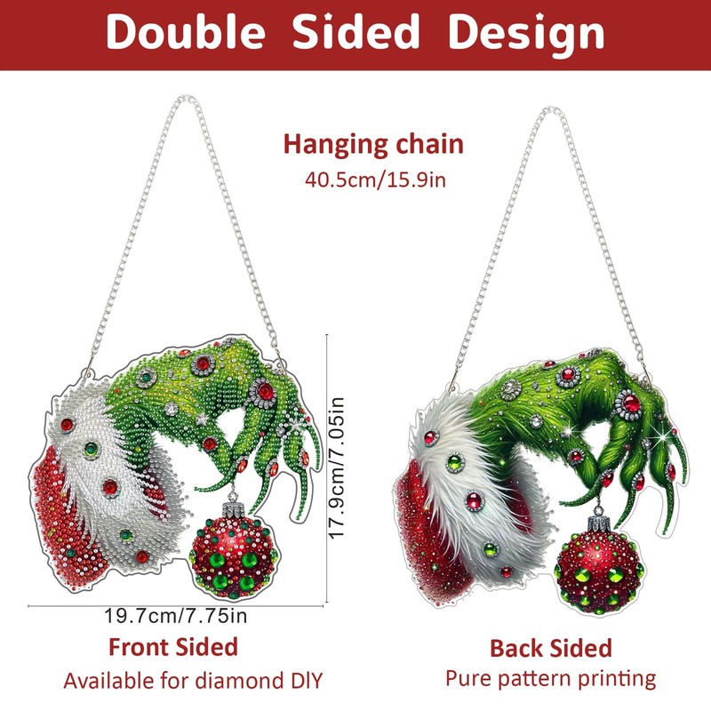 GHHKUD Weihnachten Diamond Painting Fensterbilder Beidseitige, Diamond Painting Anhänger mit Kette, Diamant Malerei Bilder Kristall Fensterbilder, Wandbehang Kit für Eingang und Fenster Wand Decor