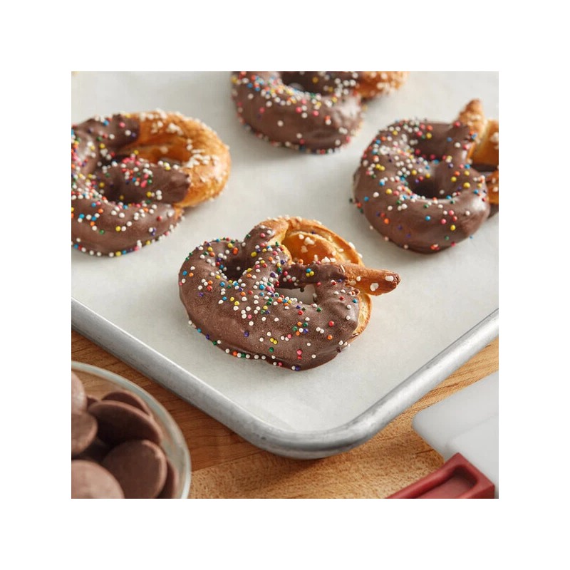 Once melted, these dark coating wafers become the perfect topping or decoration for bonbons, fruits, pretzels, truffles, and other decadent desserts. Best of all, they're easy to melt, stir, and use with no tempering required! Simply dip, coat, and drizzle this dark chocolate flavor on your food items to make creative food presentations with professional-looking results and glossy chocolate finishes. It's also great for molding and enrobing or even for use as an ice cream variegate. For added benefit, the wafers are GMO-free and do not contain any artificial flavors, colors, or preservatives.