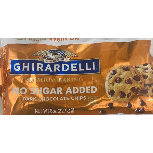 GHIRARDELLI Dark Chocolate NO SUGAR ADDED Premium Baking Morsels Chips 8 oz Bag