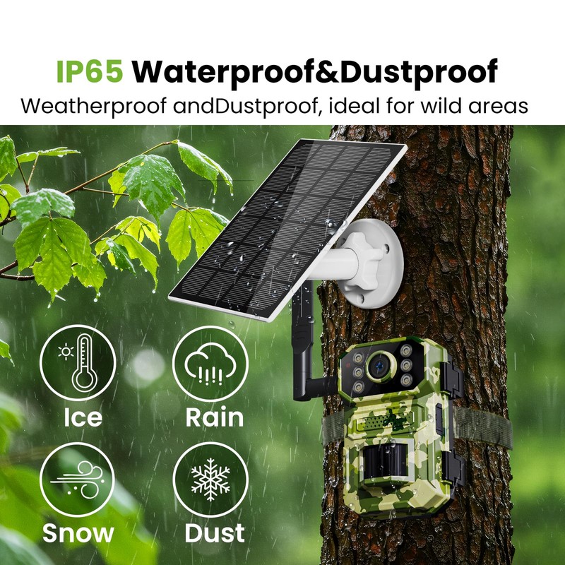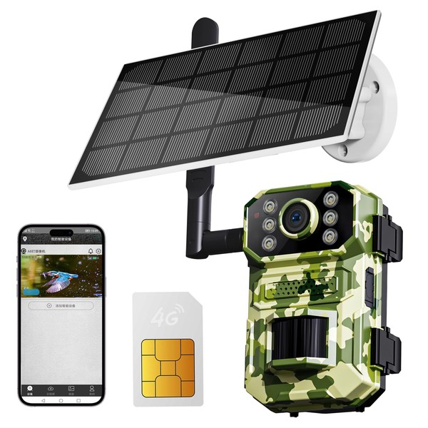 4G LTE Smart Trail Camera,HD Night Vision, IP65 Waterproof, 0.3s Trigger Speed, 2K Live Video & Photo, Motion Capture,Hunting Cam with SIM Card,Solar Power Charging,APP Control.