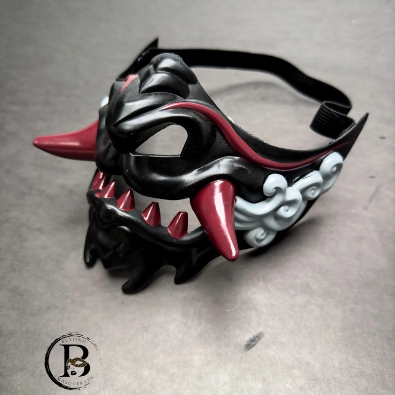 Embrace the darkness: Unleash your inner Oni! with this awesome Japanese Oni Mask. Embody the spirit of the Oni and let your inner demon shine this Halloween. Transform your attire with a night of dark enchantment adorning this magnificent cosplay mask!