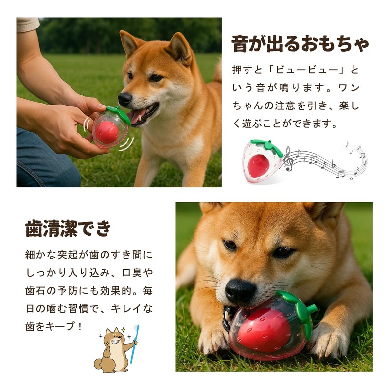 GHOSTCAT Dog Toy, Sound Toy, Strawberry, Soothing Toy, Durable, For Small to Large Dogs, Won't Break Even If You Twist It; Washable, Durable, Clean Teeth, Brushing Your Teeth, Cute, Stylish, Relieves