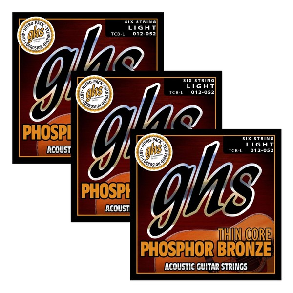 GHS Strings Thin Core Phosphor Bronze Acoustic Guitar Strings - Light (12-52), Pack of 3
