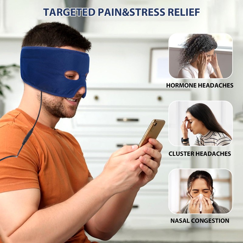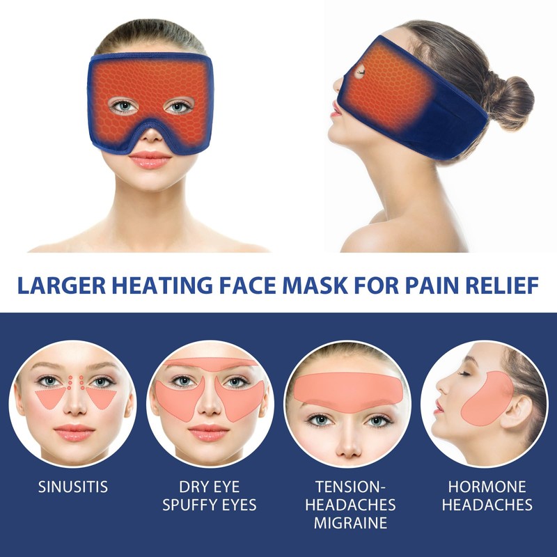 - Larger Heated Face Mask for Target Pain Relief: This GHUKN heated face mask is designed in larger size to full cover forehead,cheekbone,sinus, uses far infrared technology to quickly and effectively relieve sinus migraine,tension headache,sinusitis and puffy eyes and stress reliefing