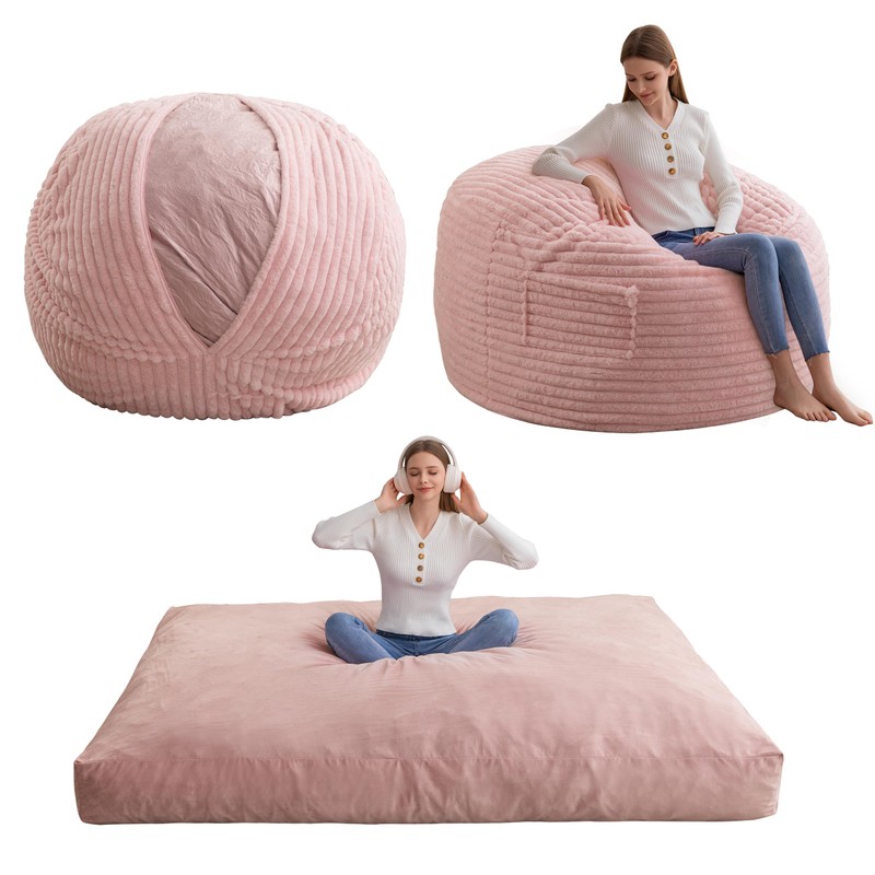 - Bean Bag Chair and Bean Bag Bed Convert Easily: The Bean Bag Bed was designed with the idea of utilizing the comfort and flexibility of a bean bag chair and expanding it into a larger, more comfortable sleeping space. Simply remove the chair cover and turn it into a bed. Tuck the bean bag bed into the chair cover to transform it back into a chair. The bean bag maintains a comfortable, flat shape, ensuring a good night's sleep without waking up with neck pain.