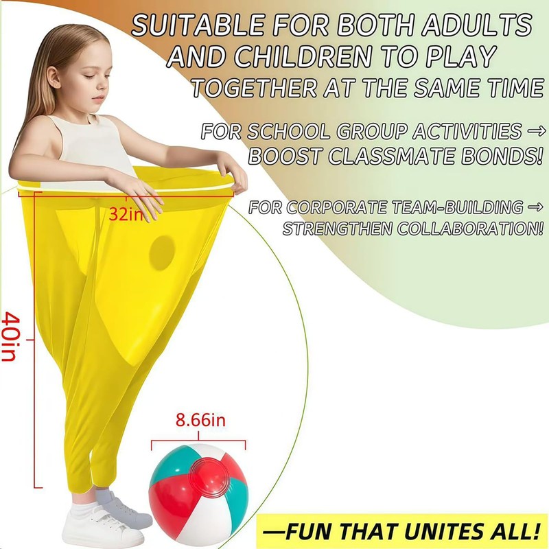 - Vibrant Yellow Granny Pants: Stand out with bright yellow 3FT tall fabric pants . Includes 6 bouncy balls + air pump (for inflating balls)—ideal for competitive toss games to boost team spirit and friendly competition.