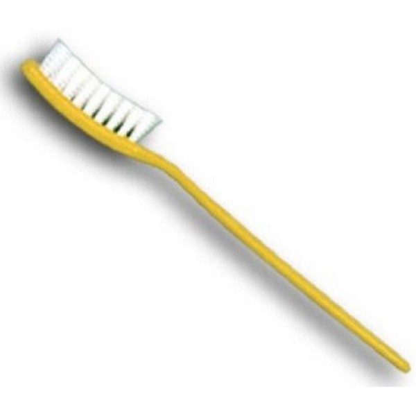 toothbrush is required for those hard to get to places. Yellow plastic with