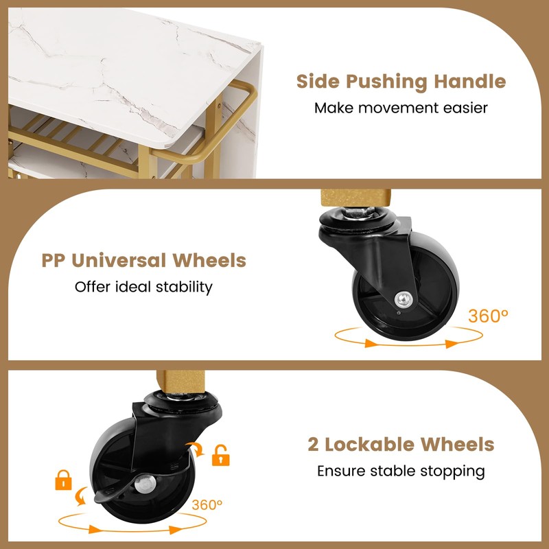 - [Convenient Moving]: Thanks to universal wheels, 2 of which are lockable, you can easily move the dining table with ease. Meanwhile, the pushing handle proves to be a practical addition when you are cleaning your space or rearranging your furniture.