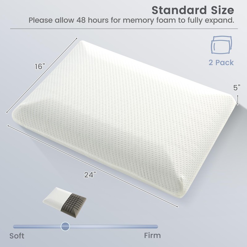 - [2 Pack Luxury Gift of Love]: Measuring 24" x 16" x 5", this set of two pillows makes an ideal gift for you and your loved ones. Each memory foam pillows fits your head, neck and shoulders, providing excellent stress relief and ensuring that you sleep soundly and wake up refreshed.