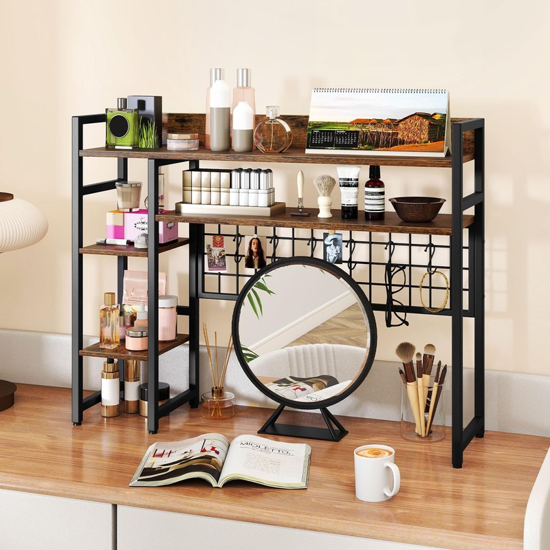 - Storage Grid with 6 Hooks: Equipped with a practical storage grid, the countertop hutch is perfect for organizing game consoles, headsets, keys, photos and more, providing a neat look and easy access. Besides, the 6 movable hooks offer flexibility and convenience.
