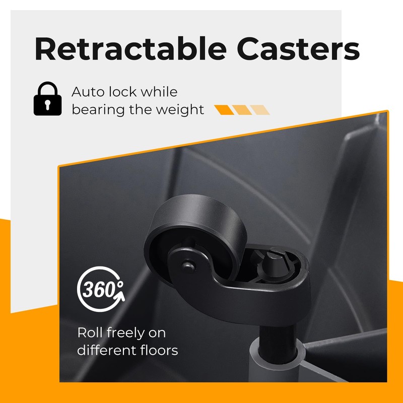 Offers a high-density plastic construction that makes this stool lightweight and durable and able to support up to 330 lbs.Its nonslip surface and nonskid bottom pad ensure secure use, giving you optimal comfort and preventing slippage. More importantly, the rolling wheels at the bottom allow you move it to any room and they are retractable when you stand on. It is a perfect stool that allows you to reach higher area to do some cleaning and repairing, ideal for your home, office and library use. The lightweight and compact design makes storage and transport a breeze, ideal for bathroom, kitchen, office, garden, camping, fishing, outdoor and more. The scooter stool is safe and convenient for users including kids, adults and elderly. Just take it to make your life much better and easier!