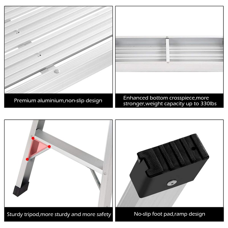 - 【Durable Construction】This step ladder is constructed with high strenghth aluminous which ensures the safety.