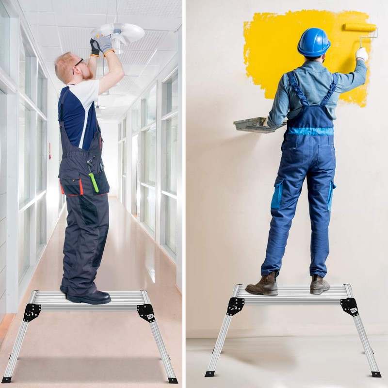 Giantex Work Platform Aluminum Step Ladder Drywall Safe CE Approved of Capacity 330 LBS Heavy Duty Portable Bench Folding Ladders Stool w/Non-Slip Mat (Silver)