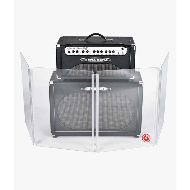 - Place these Plexiglas “walls” in front of your guitar amps to block the sound from hitting the audience or recording room head-on