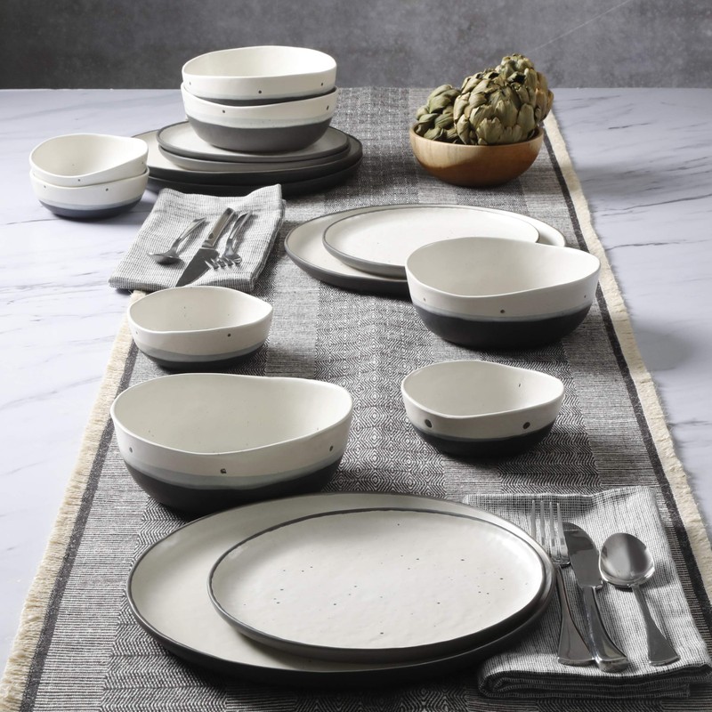 Gibson Elite Rhinebeck Double Bowl Dinnerware Set, Service for 4 (16pcs), White and Black