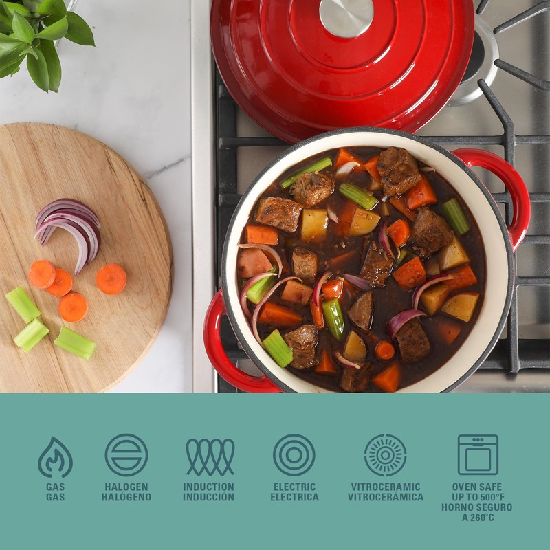 - A BOX INCLUDES: One 5-quart enameled cast iron Dutch oven with lid