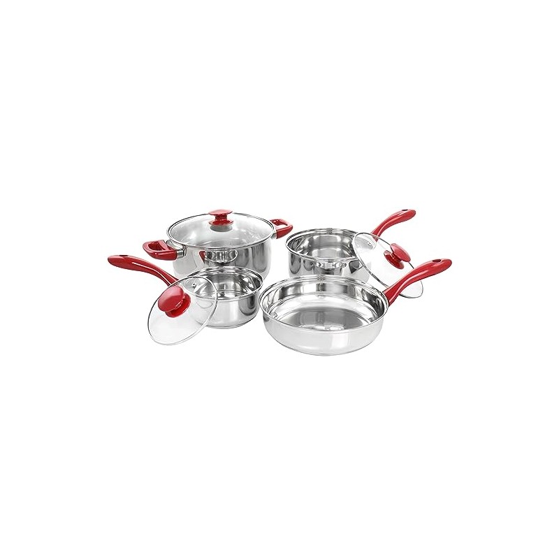Gibson Home Crawson 7 Piece Stainless Steel Cookware Set in Chrome with Red Handles